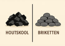- Houtskool of briketten (stabiele warmte, geen snel brandende rommel)